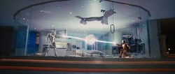 그들의 싸움이 교착 상태에 도달한 후, Stark와 Rhodes는 서로 리펄서를 발사하여 Stark의 집의 상당 부분을 파괴한 리펄서 폭발을 일으켰습니다. Rhodes는 멍한 친구 위에 서서 Mark II 갑옷을 입고 떠나 에드워즈 공군 기지로 날아가 그의 감독하에 미군 에 넘겼습니다.