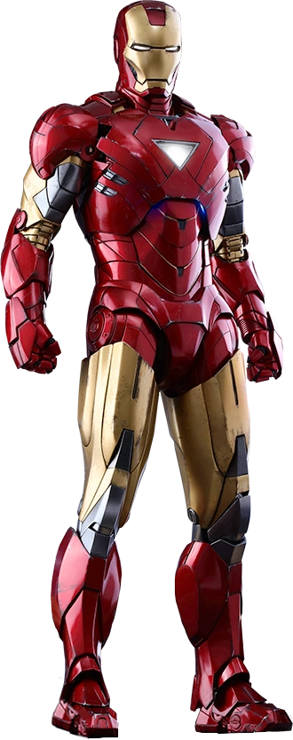 Mark VI Iron Man Armor 는 토니 스타크(Tony Stark) 의 여섯 번째 Iron Man 슈트였으며, 토니 스타크(Tony Stark)가 새로운 요소 를 사용하여 더 높은 에너지 출력을 가진 개선된 Arc Reactor 를 만든 후, Mark IV 를 대체하기 위해 제작되었습니다 . 삼각형 가슴 부분이 있는 최초이자 유일한 클래식(I-VII) 갑옷이었습니다. 그것은 스타크가 위플래쉬를 물리 치고 로키를 포획하고 헬리캐리어 를 수리하는 데 특히 사용했습니다.