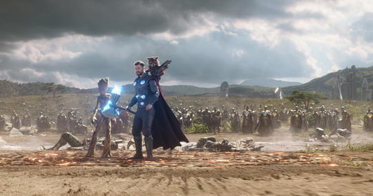 토르는 가디언즈 오브 갤럭시를 모두 만나면서 타노스와 싸우기 위해 스톰브레이커를 만드는 여정에 동행한 로켓과 특별한 유대감을 형성합니다. 그 미션에 합류한 그루트도 동맹이 된다.