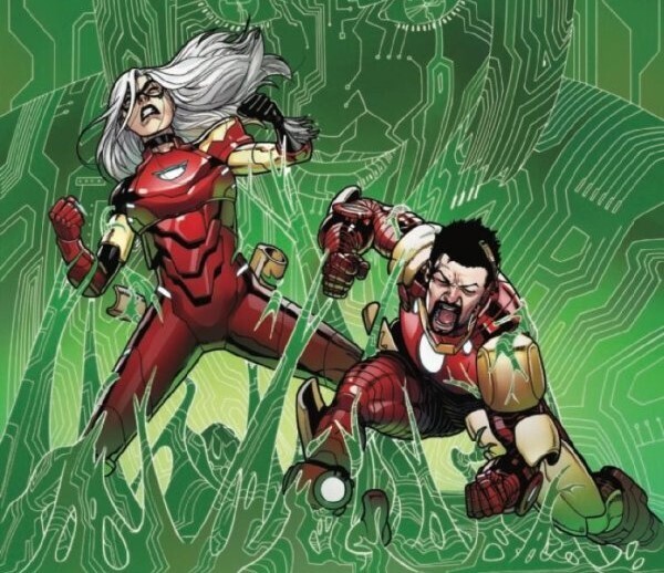 Black Cat은 전 여자 친구이자 Black Fox의 동료 전 학생 인 Tamara Blake 의 잘못된 끝에 자신을 발견했습니다 . Blake는 Cat이 Black Fox의 죽음에 책임이 있음을 알고 복수를 원했습니다. Cat을 상대로 우위를 점하기 위해 그녀는 Stark가 재미로 개조한 Iron Cat 갑옷을 훔쳤습니다. 그녀는 또한 Stark의 하드웨어에 바이러스를 남겨 Cat과 Stark가 팀을 이루도록 했습니다.