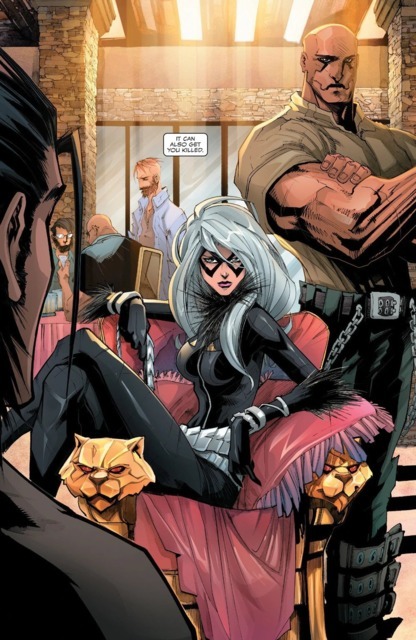 슈피리어 스파이더맨과 마주친 후, 고양이는 도둑의 대가에서 범죄의 두목으로 더 큰 변화를 주기로 결정했습니다. 그녀는 그녀의 2인자가 된 해머헤드를 포함하여 그녀의 대열에 합류하고 뉴욕의 계층 구조의 최상위에 도달하는 데 도움을 줄 초강력 괴짜 무리를 얻었습니다 . 그녀는 또한 Bar With No Name을 구입했습니다 . 이 새로운 직업은 여러 초인과 머리를 맞대고 있었습니다. Hawkeye 와 Deadpool은 팀을 이루어 그녀가 SHIELD 활동 요원 목록에 손 을 대는 것을 막았습니다. 데어데블, 아이언 피스트, 루크 케이지, 제시카 존스는 라이벌 범죄 보스인 윌리스 스트라이커 에게 치명상을 입은 후 그녀를 구해야 했습니다.